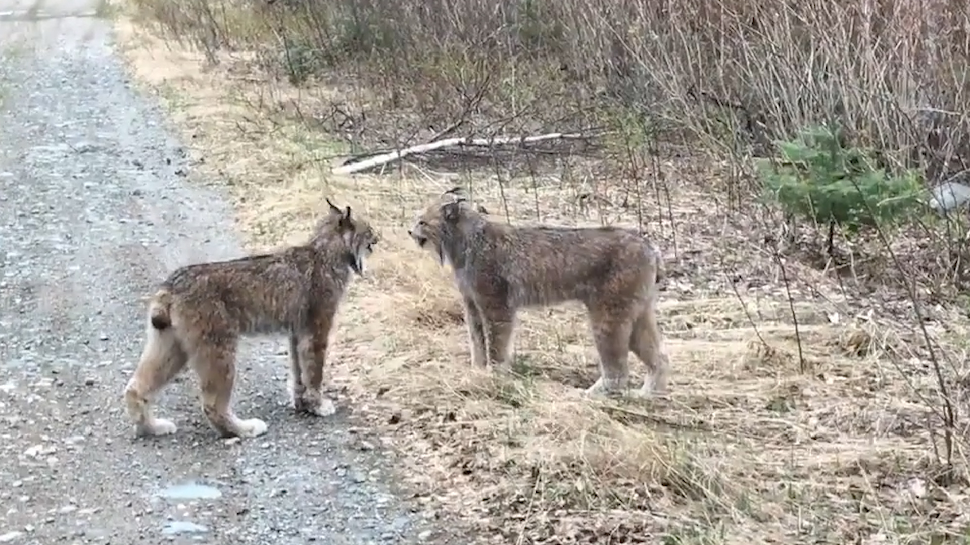 When a man in Ontario came across two lynx staring each other down and shrieking at one another on a rural road, he and his girlfriend took out their phones and recorded the encounter to post on Facebook.