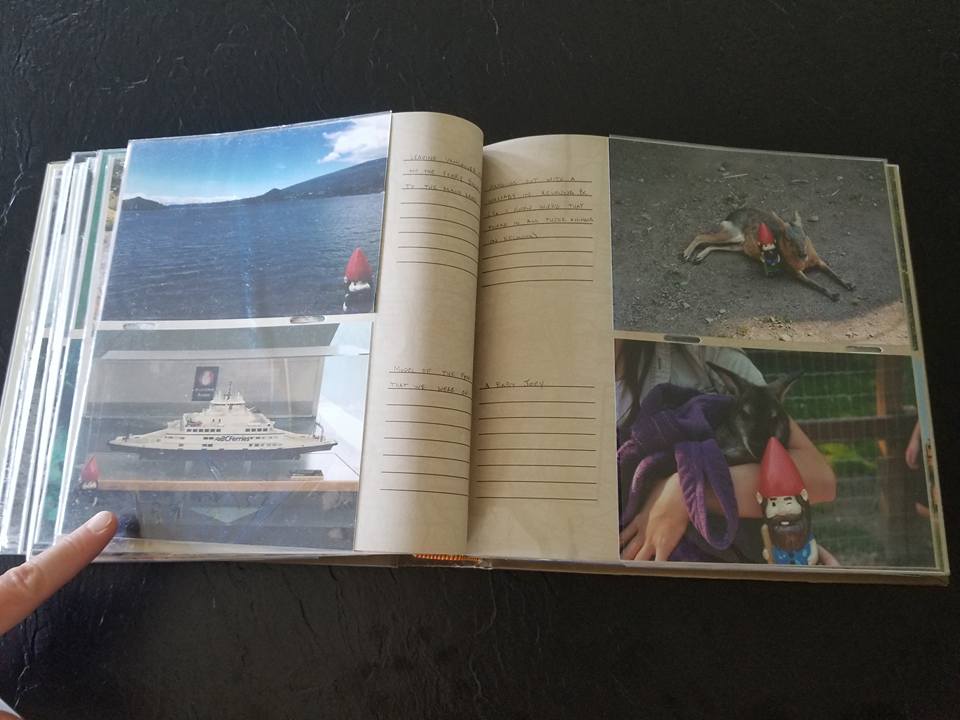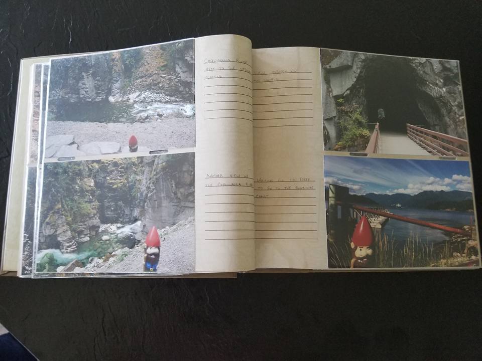 The gnome didn’t come home alone — it was a part of a gift basket that included a photo album with 157 pictures of all of the travels it had been on in the past year. Along with the scrapbook, the package also had another gnome, a fridge magnet, a bar of soap and a map of all of the stops across the United States and Canada the yard ornament had made.