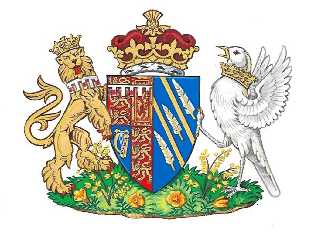 The coat of arms for the Duchess of Sussex, as she is now formally known, includes symbols that invoke the former actor’s background and look to her future.