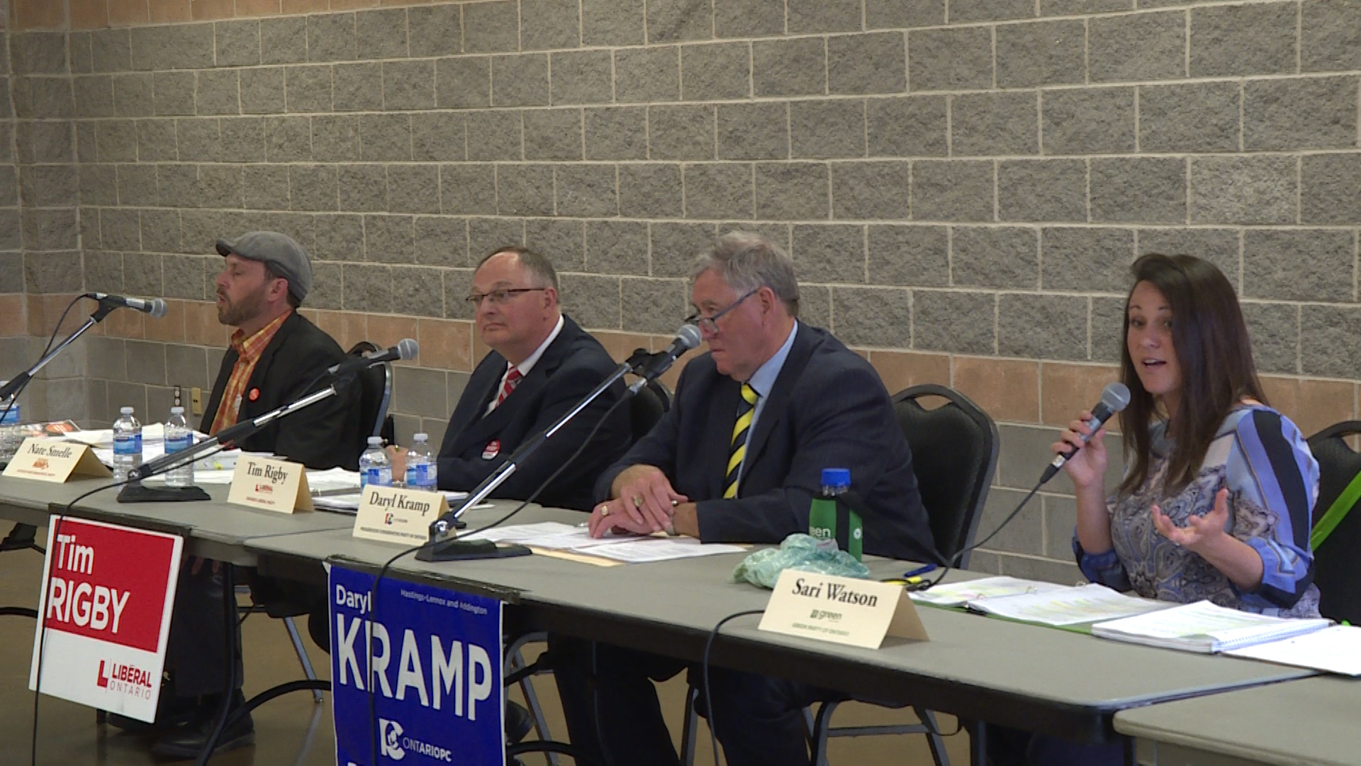 It was a full house Thursday night at the Strathcona Paper Centre in Napanee as four Ontario election candidates geared up to meet voters in the race to represent Hastings—Lennox and Addington.