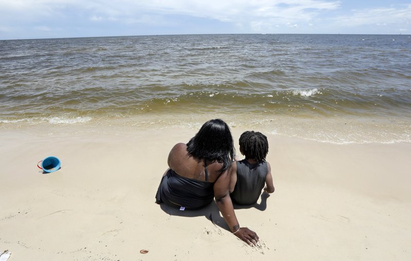 Tracey Gasper and her 6-year-old son, Chase, travelled to Biloxi Beach from Donaldsonville, Louisiana, for a day of fun in the sun with a group of friends from Baton Rouge, Louisiana. The weather had scared off the usual crowds expected for the holiday weekend.