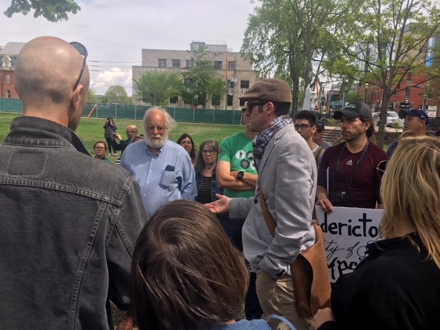 Approximately a hundred people showed up to a rally in the square on Saturday, in hopes of trying to get city officials to reconsider cutting down 19 trees as part of the city’s revitalization plans for the square.