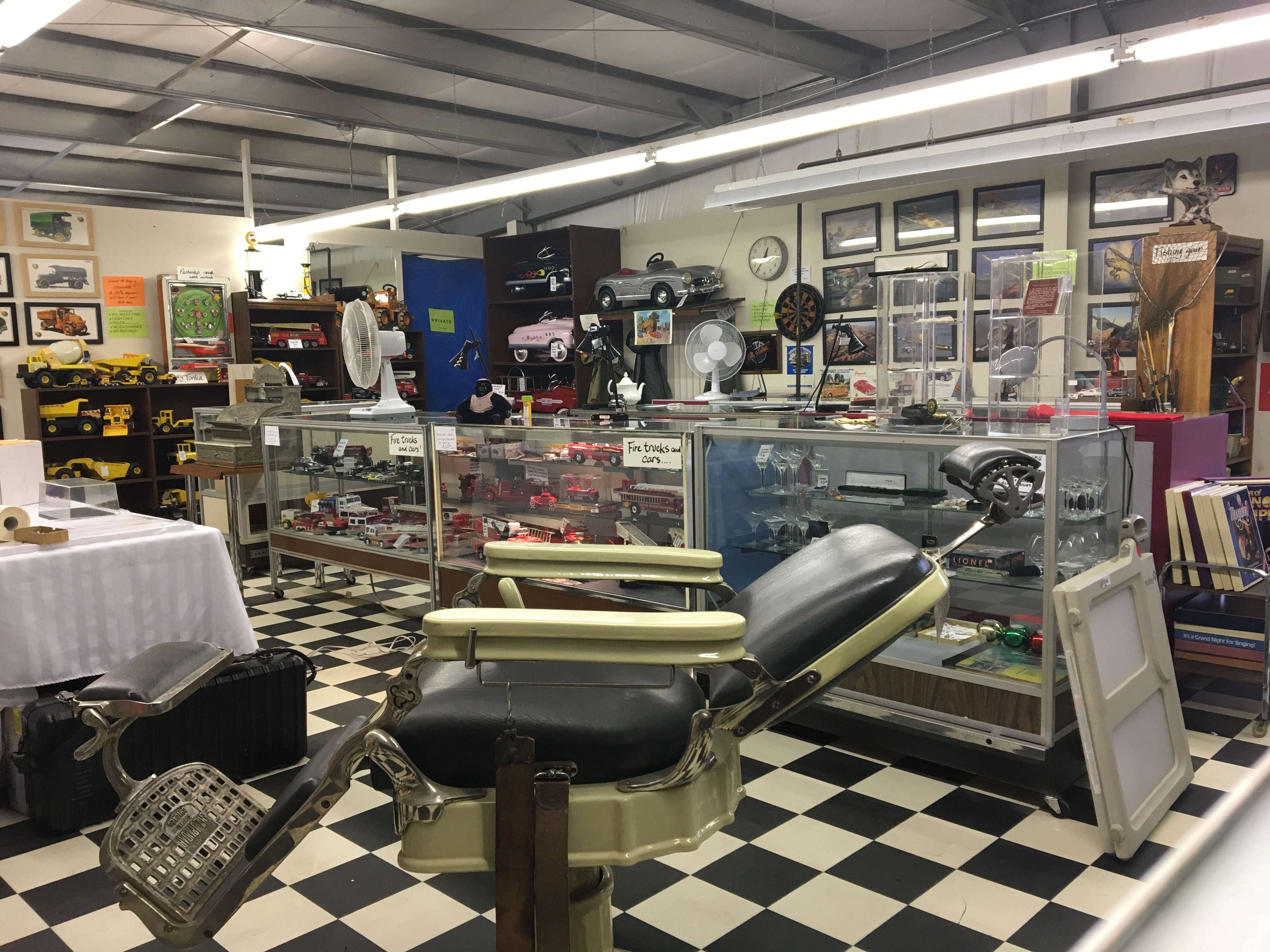 He has display cases lining the walls showcasing all his finds. Among his collectibles, vintage Calgary Stampede posters, model planes, tractors and fire trucks.