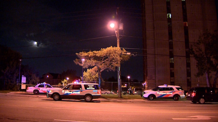Toronto police and paramedics said emergency crews were called to the Weston Road and Sheppard Avenue West area at around 10:45 p.m. after reports of the sounds of gunshots.