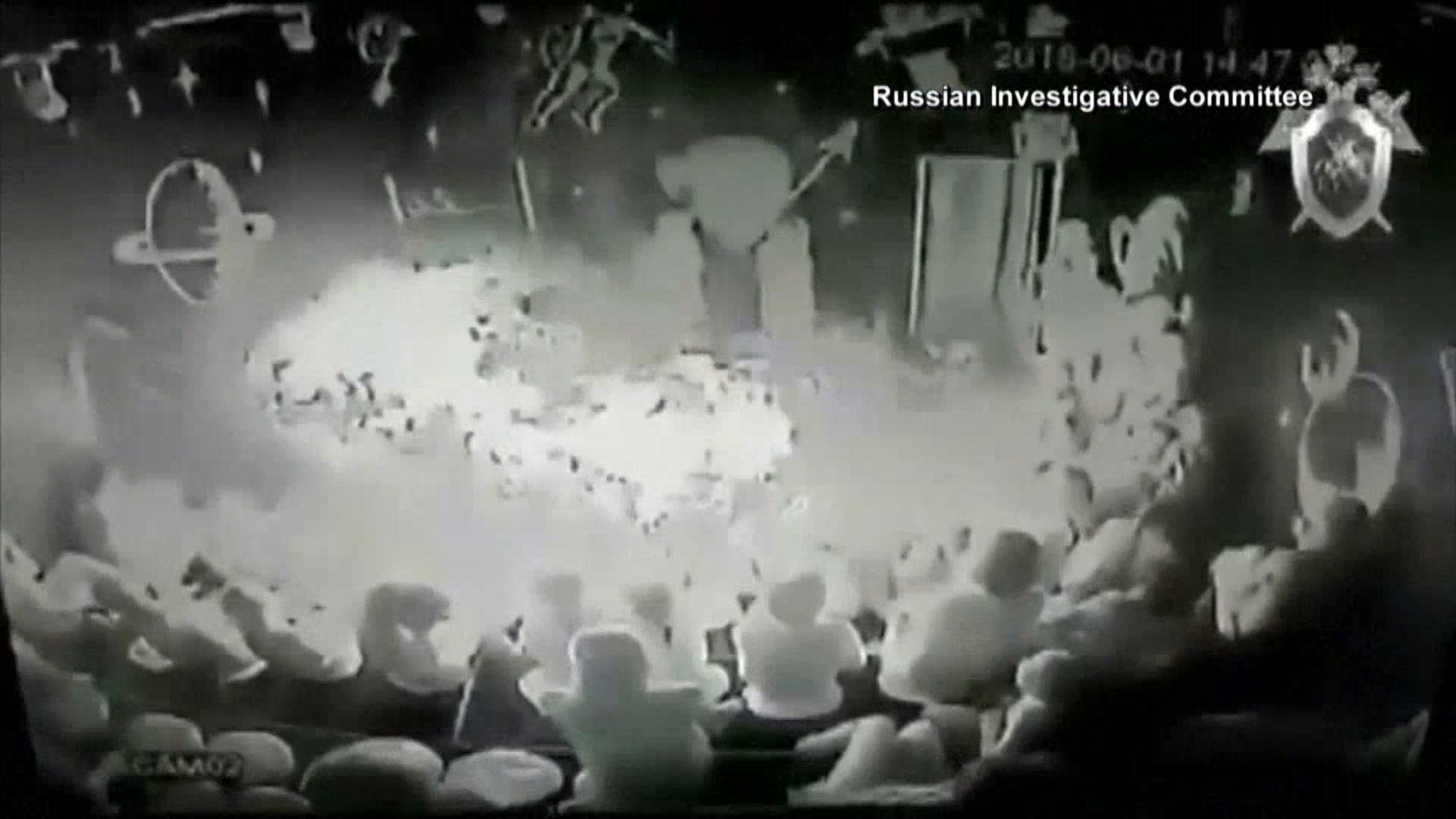Security cameras inside the closed room where the demonstration was held captured a massive fireball eruption, sending spectators running for the exits.