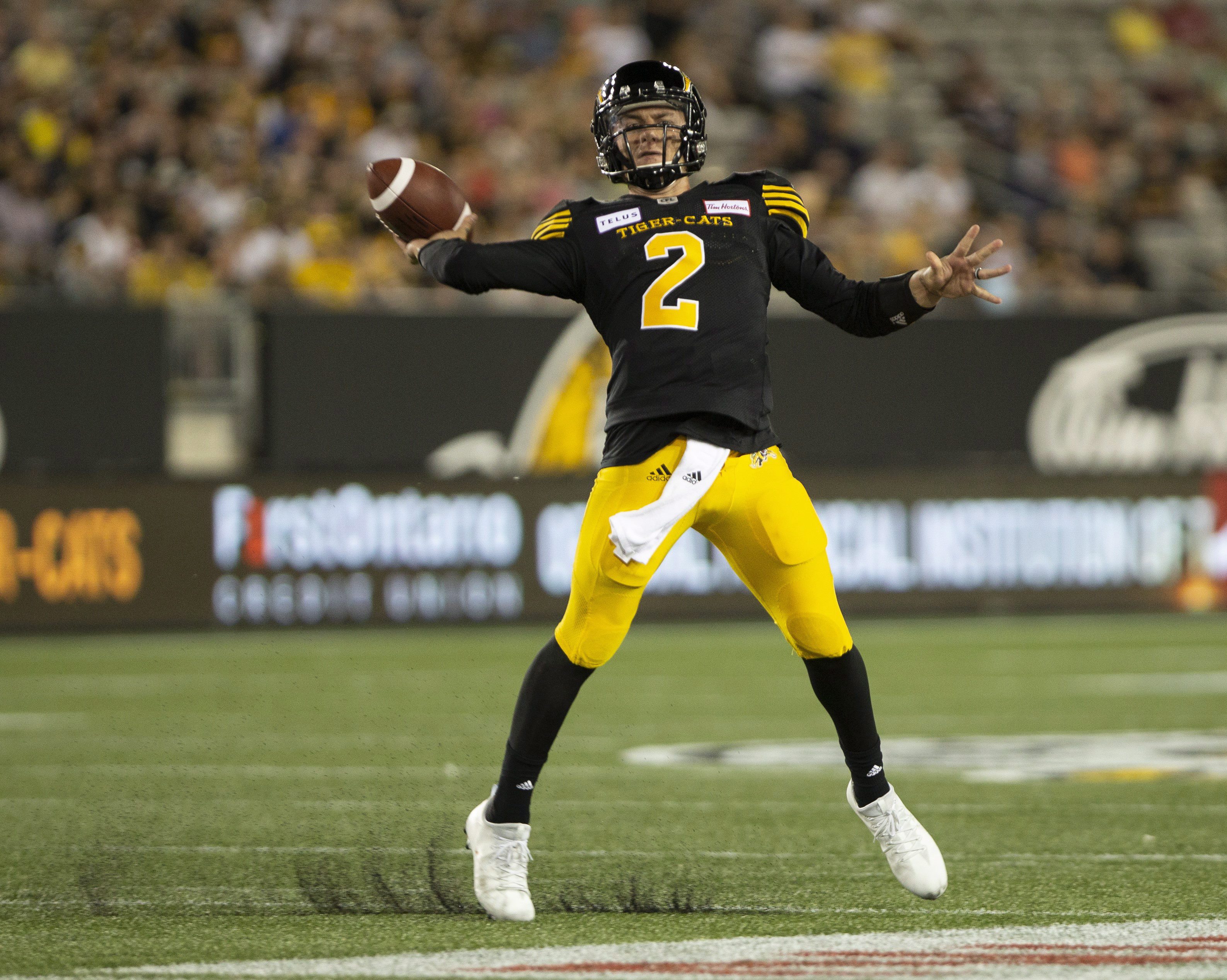 Jeremiah Masoli started for the Tiger-Cats and went 8-for-13 for 115 yards, one touchdown and two interceptions.