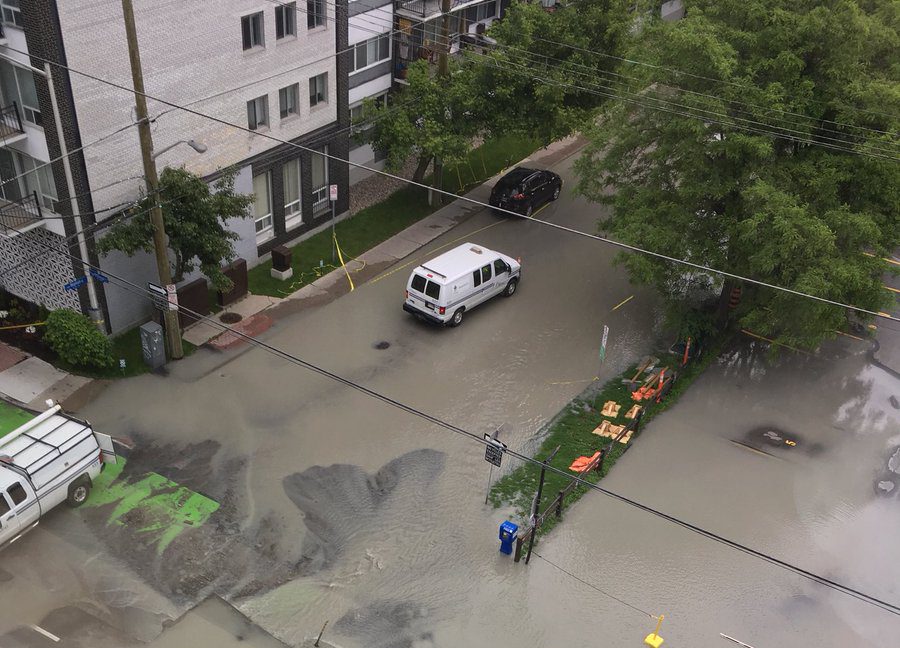 The water main break occurred below a gas main early Tuesday morning at the intersection of O’Connor at Nepean, according to the city of Ottawa. The water that flowed from the break displaced the “underlying soil and roadbed,” Carol Hall, the city’s manager of water distribution, said in a statement.