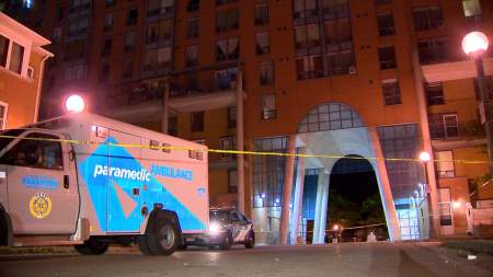 A police spokesperson told Global News that officers, paramedics and firefighters were called to the Bradham Path and Birmingham Street area, northwest of Islington Avenue and Lake Shore Boulevard West, after 11:20 p.m. with reports of the sounds of gunshots.