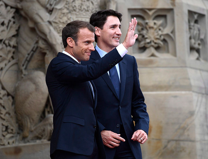Standing next to each other on Parliament Hill, Macron and Trudeau say they will still push Trump to reverse his controversial imposition of steel and aluminum tariffs on his G7 partners, which they brand as illegal and bad for everyone’s economy.