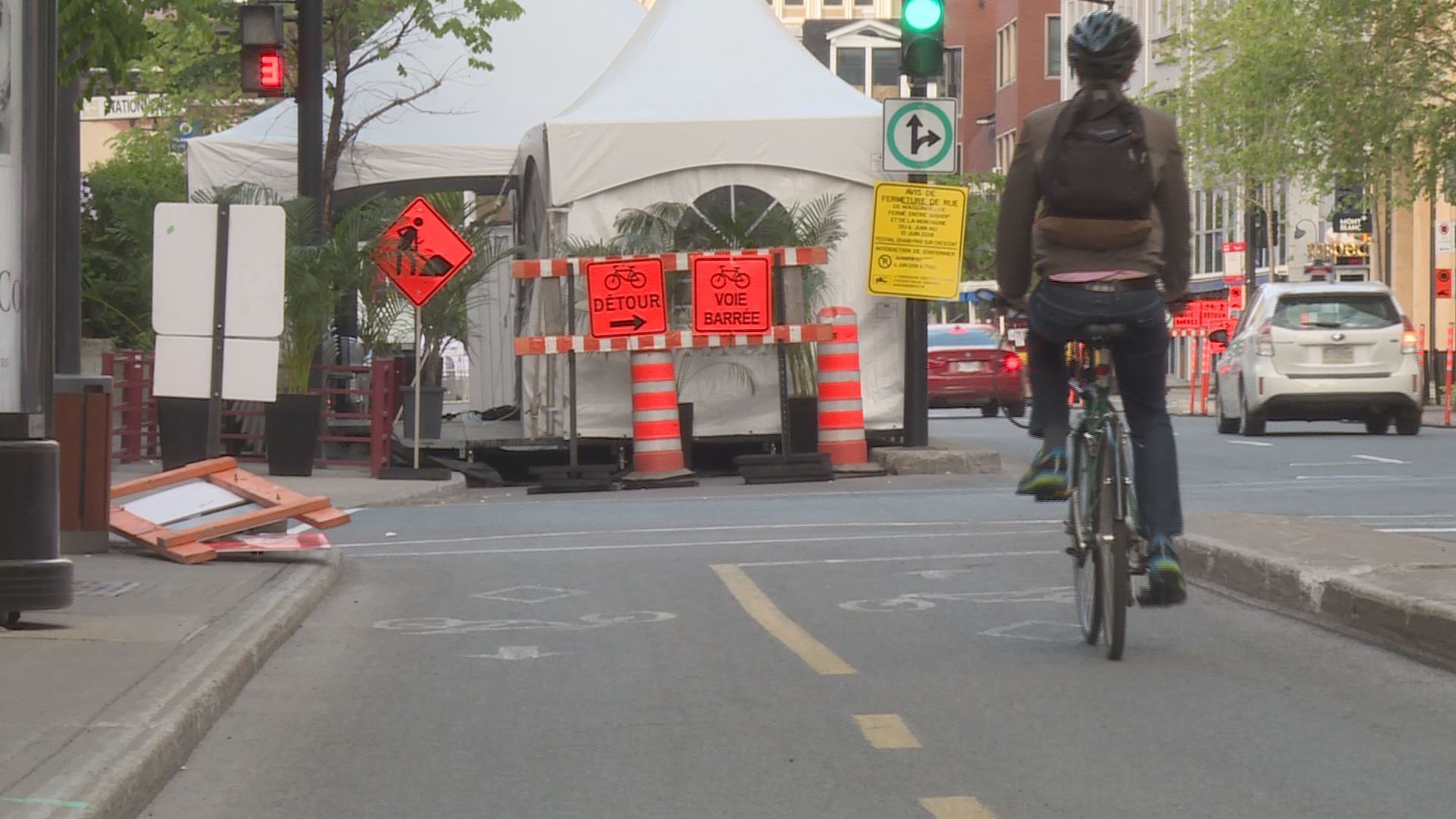 Cyclists are concerned that the de Maisonneuve Boulevard bike path detours around the Crescent Street party site are a disaster waiting to happen.