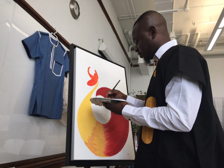 Ajayi’s award is sponsored by the Calgary Catholic Immigration Society. Its CEO Fariborz Birjandian said the award helps “engage the new Canadian artist to the Canadian art community.”