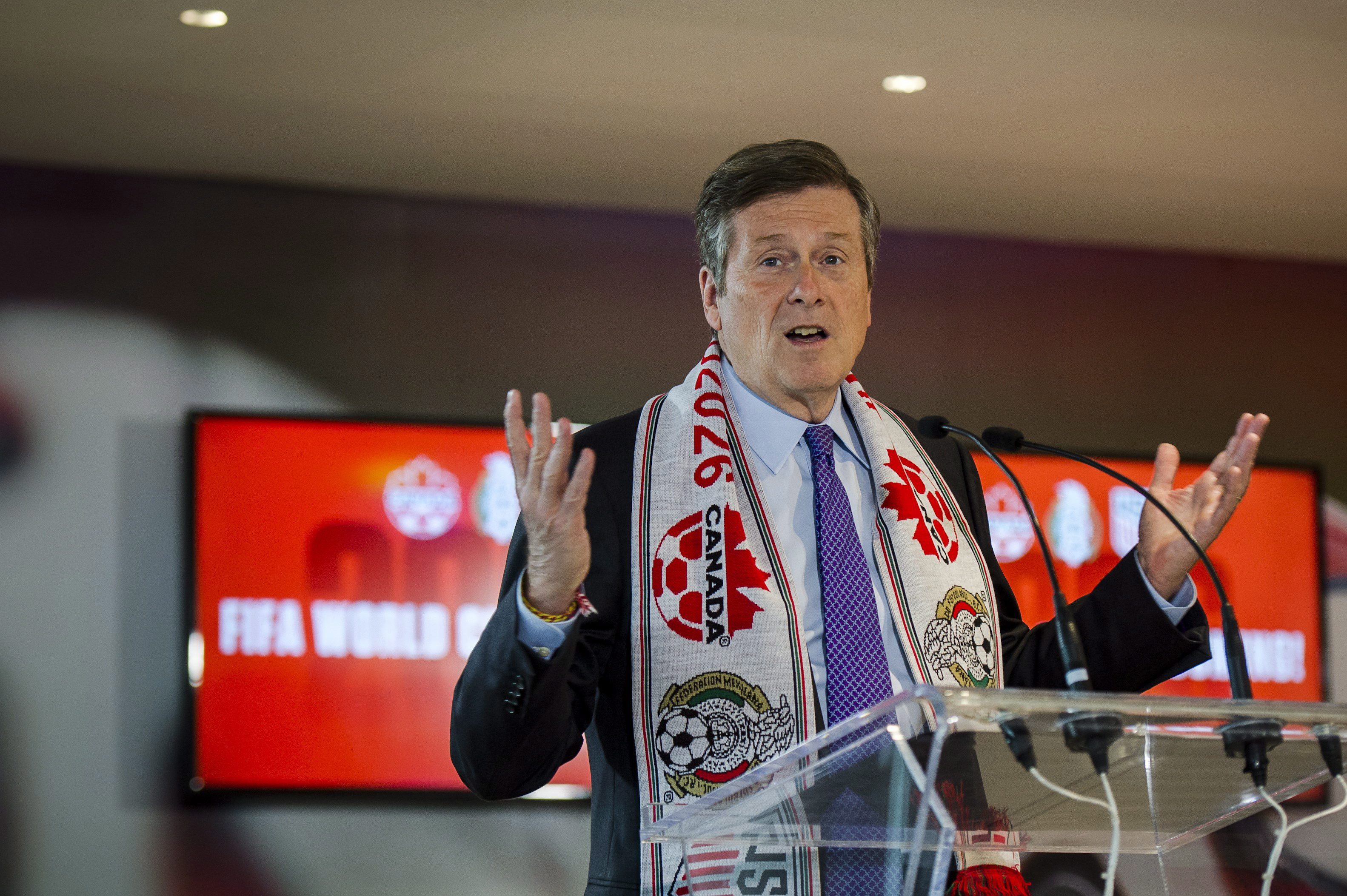 John Tory acknowledged that Canada had little chance of hosting the global soccer tournament on its own, but will now be among those reaping the benefits of the massive event.