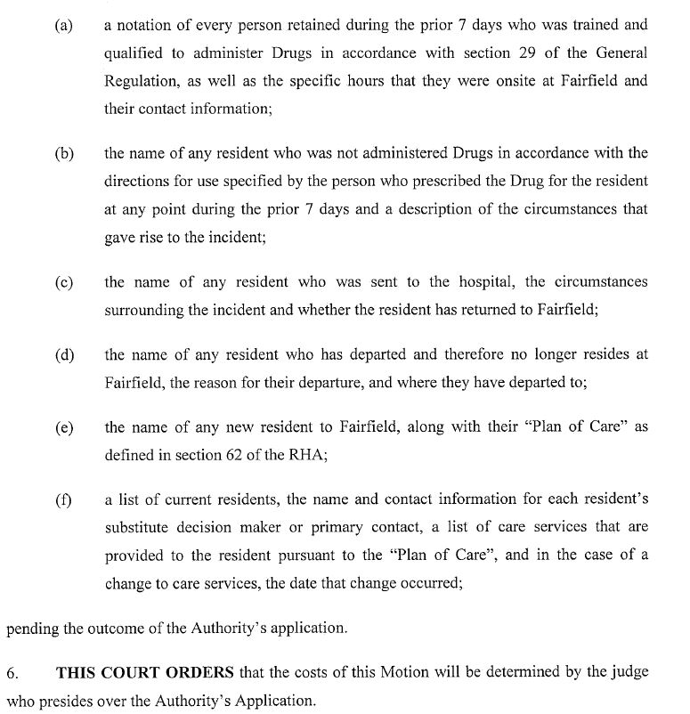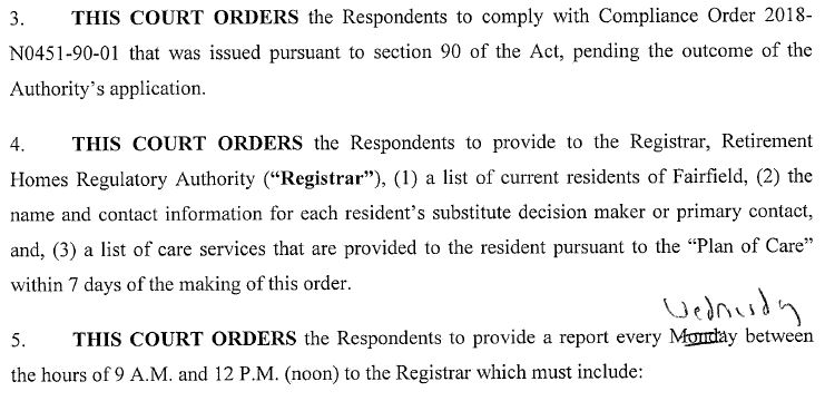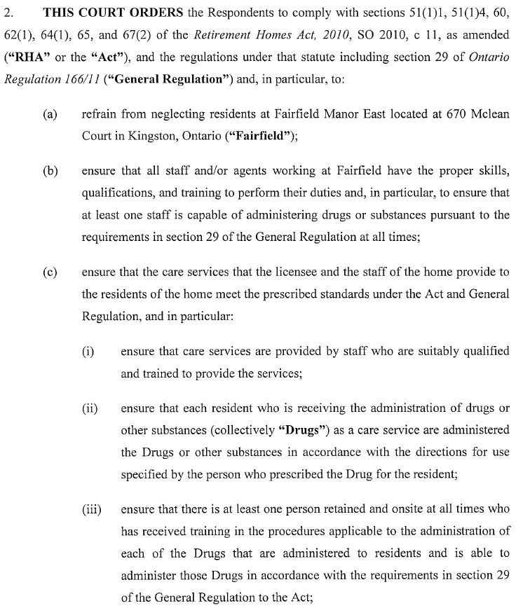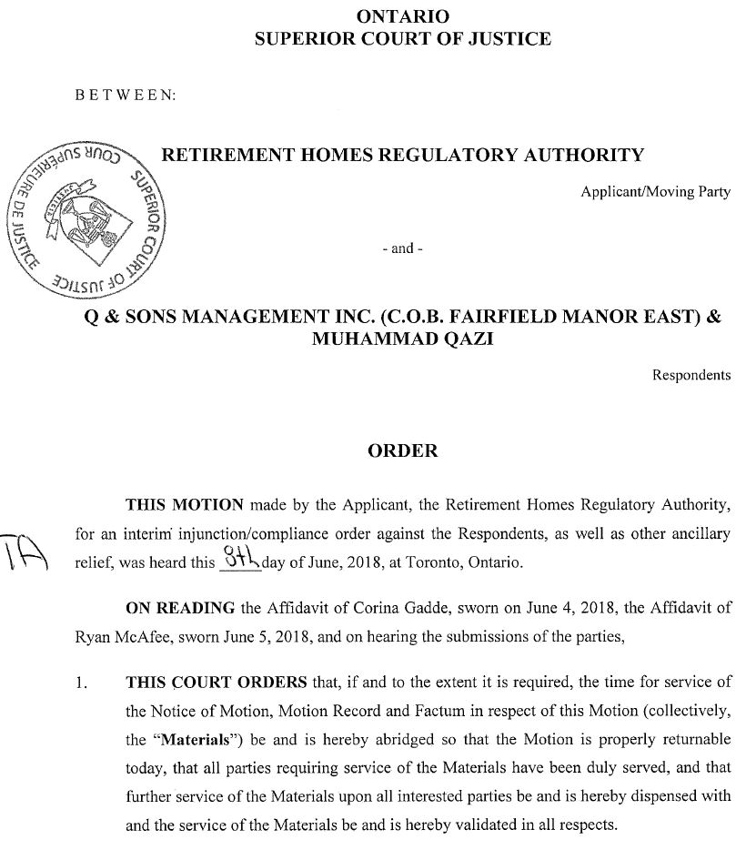 In several non-compliance orders found on their website, the regulator has found a number of issues of concern. The court document dated on June 8, orders the Quazi to “refrain from neglecting residents at Fairfield Manor East.”