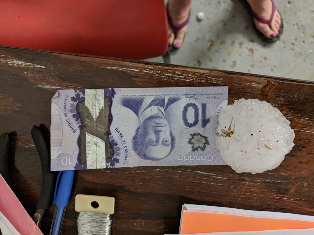 In other areas, toonie sized hail hit Baldur and Winkler, loonie sized hail was seen south of Greenway and at La Riviere, quarter sized hail at Minto, Swan Lake and Hartney, nickel sized hail in Thornhill, golf ball sized hail in Manitou. The heaviest downpour was likely in Belmont where 76 mm fell in approximately 30 minutes.