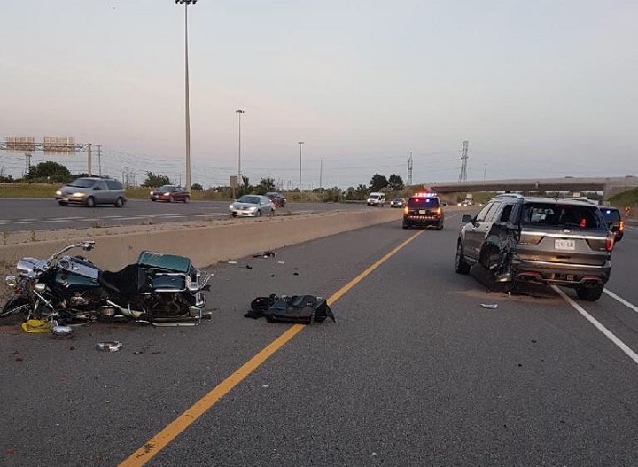 OPP said she was driving in the HOV lane when the SUV attempted to switch lanes in front of her. They said the motorcyclist collided with the rear end of the vehicle, ejecting her from the bike.