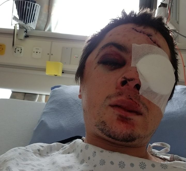 A 24-year-old man was taken to hospital early Sunday morning after he was badly beaten by a group of young men wielding a pool cue and a longboard.