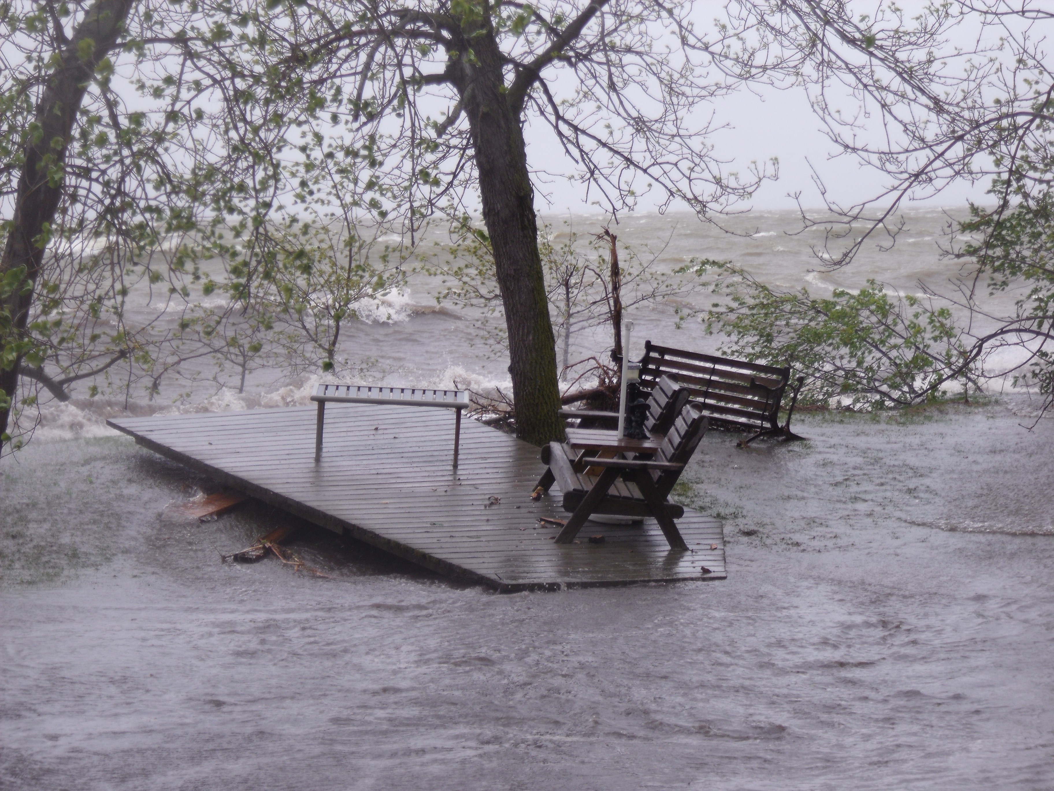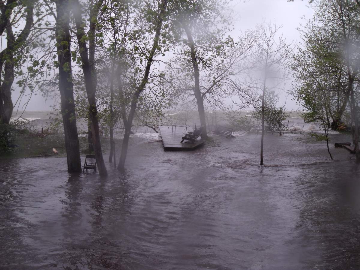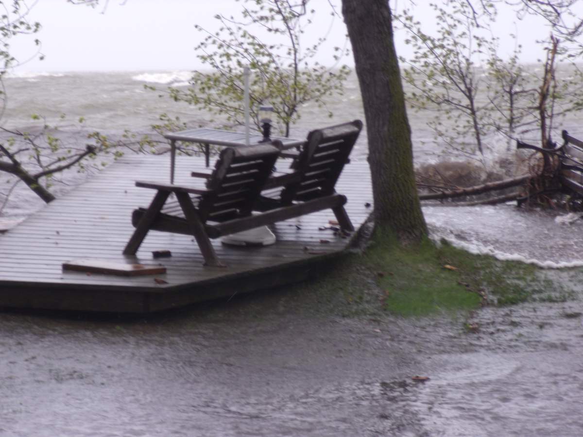 “All of a sudden, all hell broke lose. It was just like chaos. Everything that wasn’t tied down was floating, flower pots, you name it was just going by between our houses,” she said.
