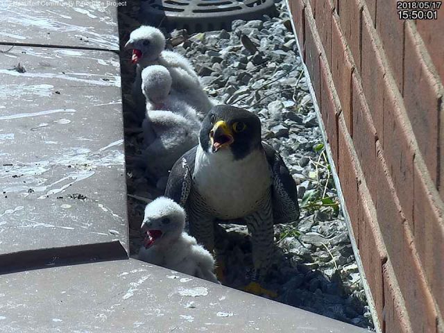The three other male falcon chicks — Ainslie, Lisgar and Lawrence (named after Hamilton parks)— are said to be doing well.
