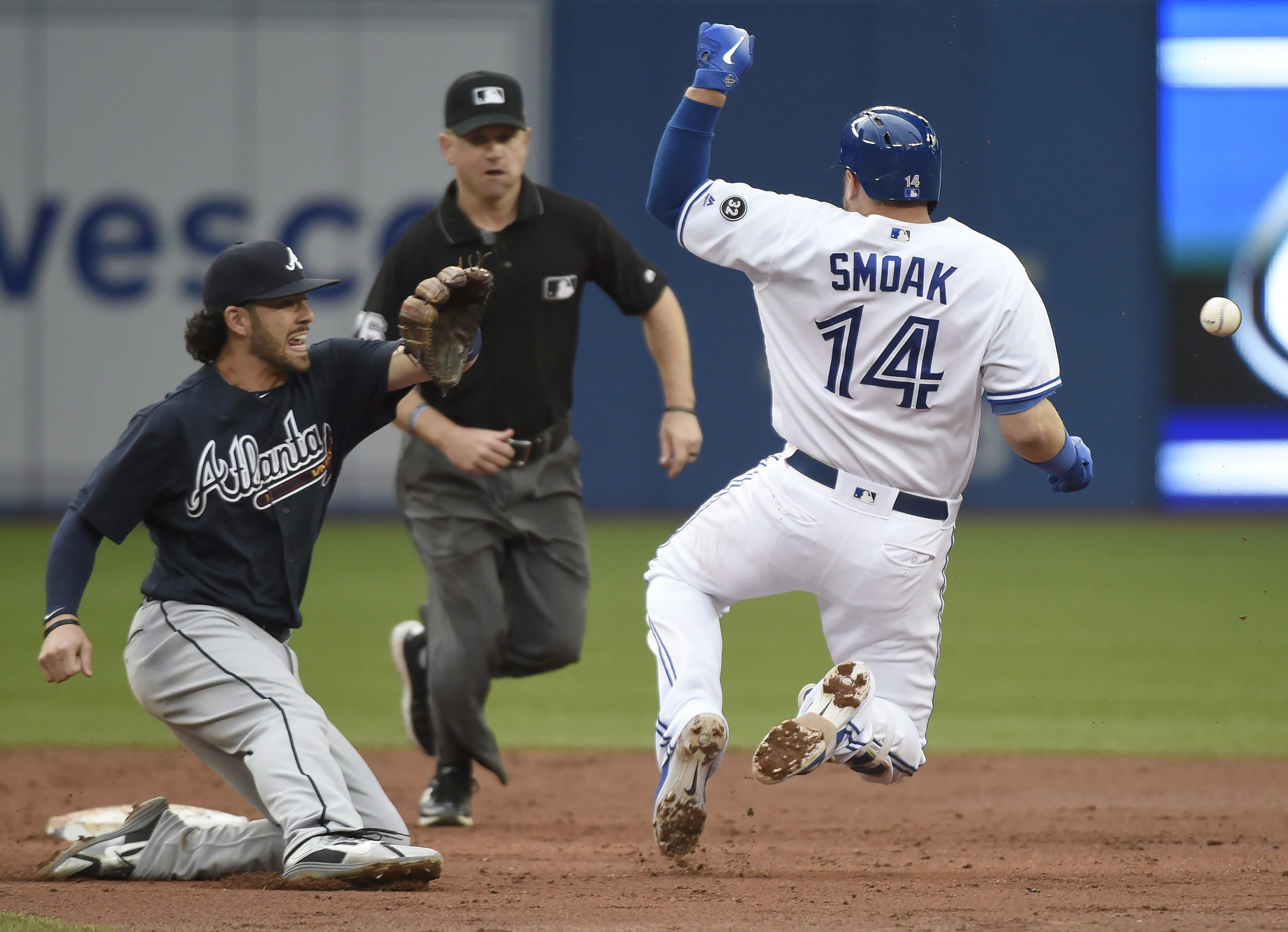 The Braves outhit Toronto 14-8.