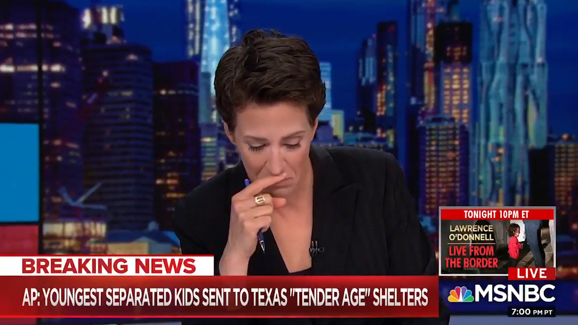MSNBC political commentator Rachel Maddow broke down in tears while reading a live update of “tender age” shelters on air.