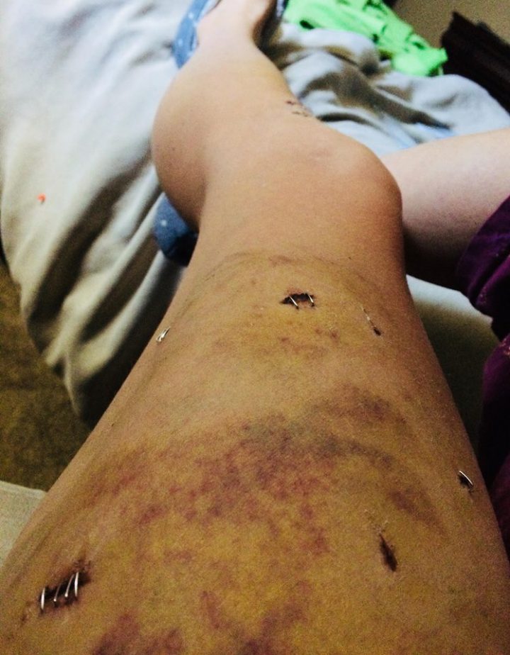 He escaped with minor scratches, while Casadi needed 34 staples to help with her wounds.