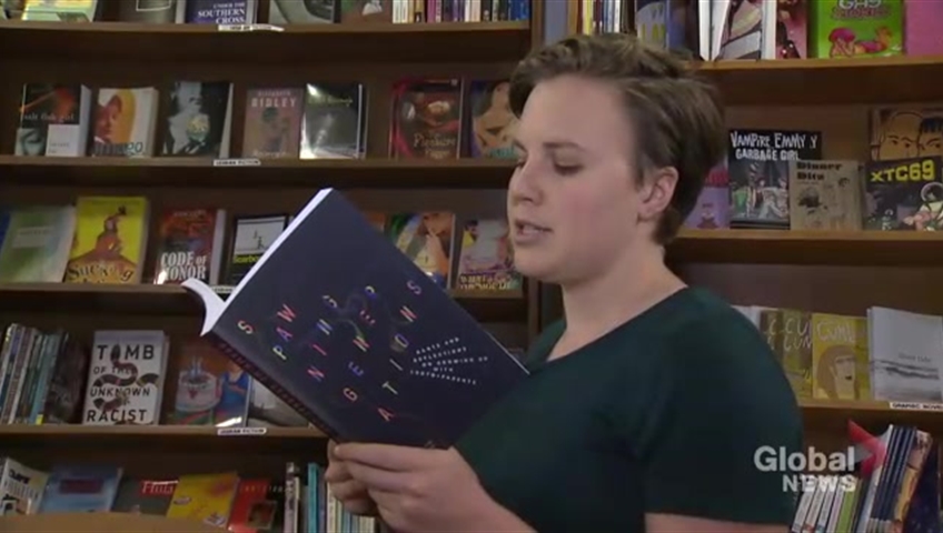 “I was in Grade 1 and my best friend Jane and I were rolling around in the snow. Out of nowhere a voice sneered, “What are you, lesbians?” Sadie Epstein-Fine said as she reads aloud from her book, Spawning Generations: Rants and Reflections on Growing Up with LGBTQ+ Parents.
