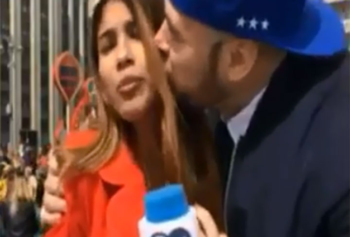 A television journalist covering the FIFA World Cup in Moscow had her breast grabbed and was kissed on the cheek by a man during a live broadcast shortly before the start of a game late last week.