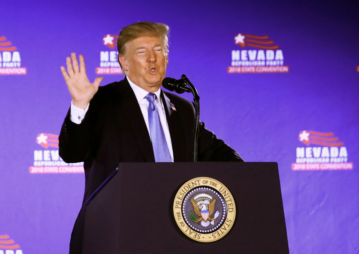 “My people are actually doing a very good job,” Trump said in a speech at the Nevada Republican Party state convention at Suncoast Hotel and Casino in Las Vegas.