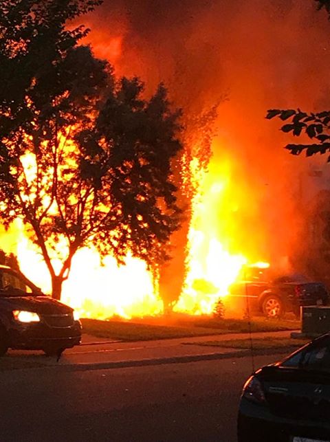 Another neighbour heard the boom, and watched as flames consumed the home in a matter of minutes.