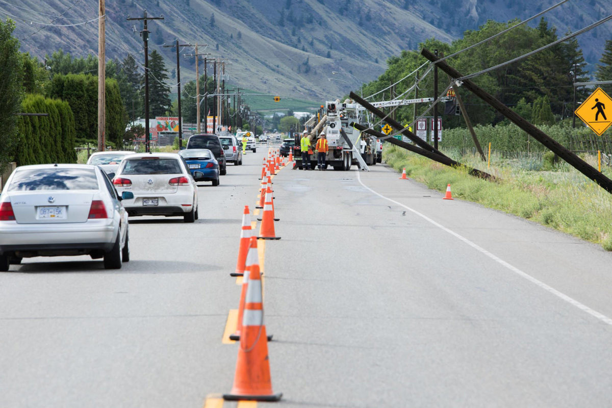 There are multiple power outages and power poles down across the Okanagan because of a wind storm early Monday morning.