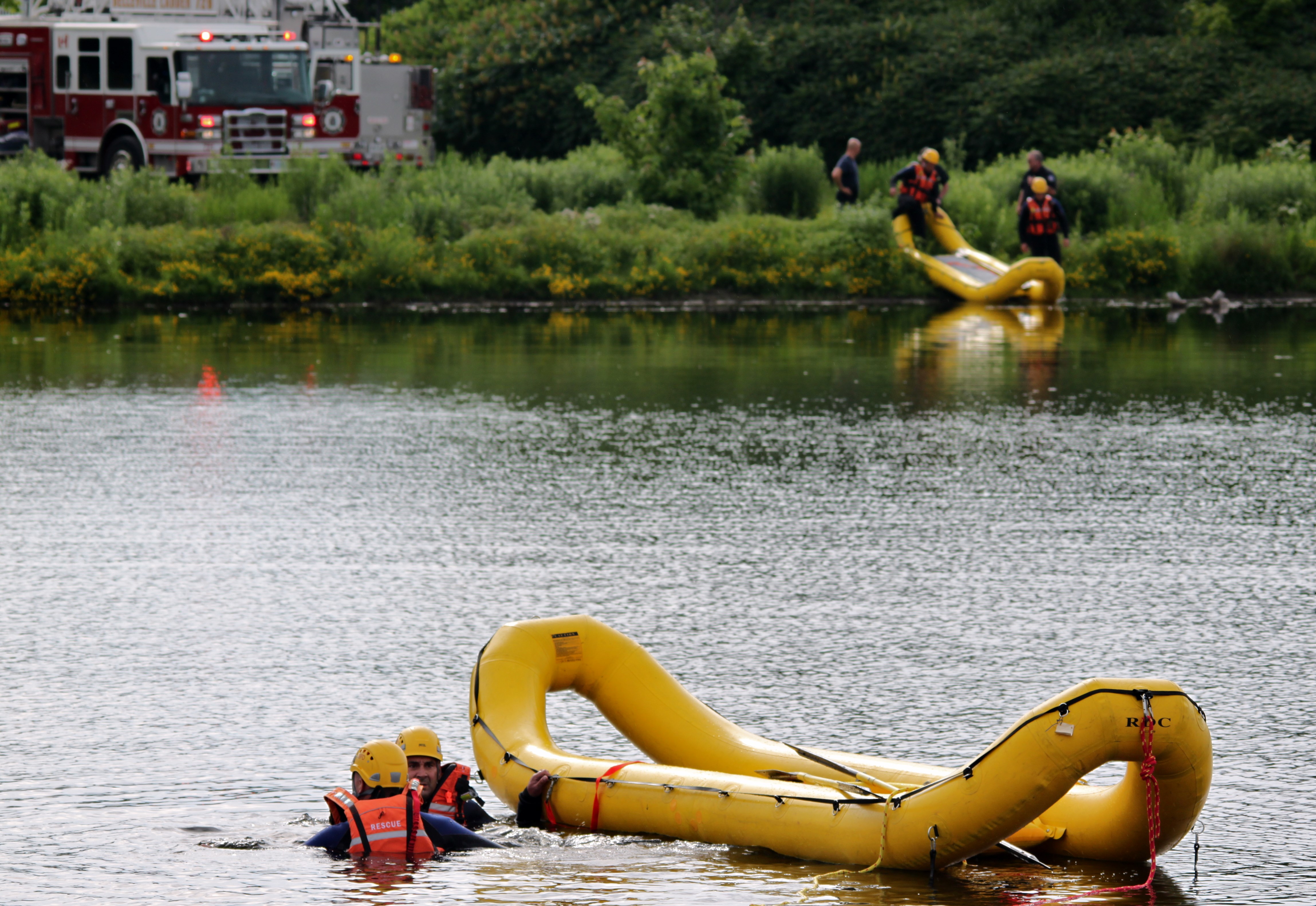 Police say three passersby went into the Moira River to help the unidentified woman escape her car.