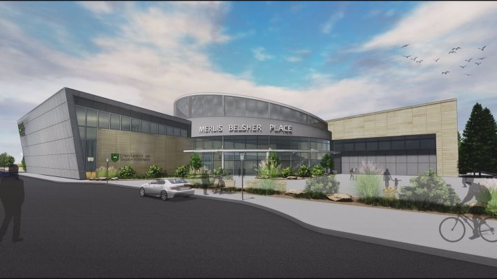 Merlis Belsher Place is scheduled to open in October 2018, with two NHL-sized ice surfaces and two NBA-sized basketball courts.