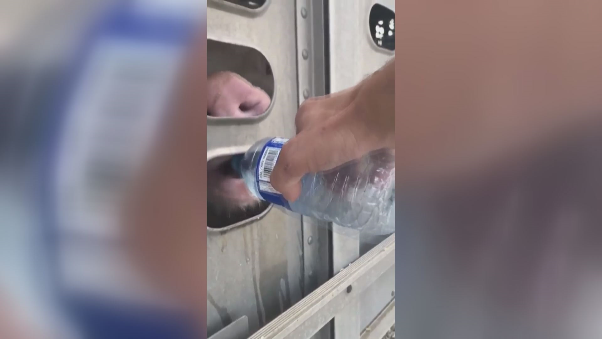 Justin Reineke was driving along Highway 1 near Ste. Anne on the afternoon of Tuesday, June 26 when he discovered a stuck transport truck carrying pigs. He pulled over and attempted to quench their thirst, as he recorded video of it on his cell phone.