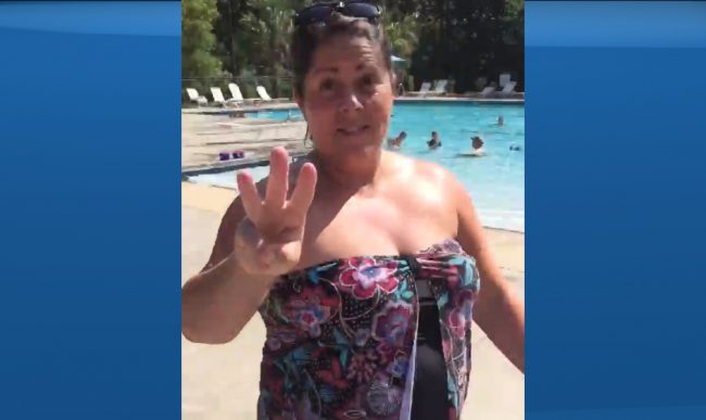 Video of the incident posted to Facebook appears to show the woman striking the teen on his face twice and yelling at him to “get out,” as children and families around the pool look on.
