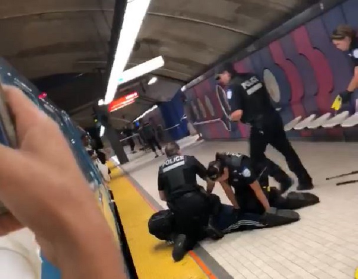 Montreal Metro users were witness to a violent altercation inside the Fabre station on the blue line, leaving three police officers injured.