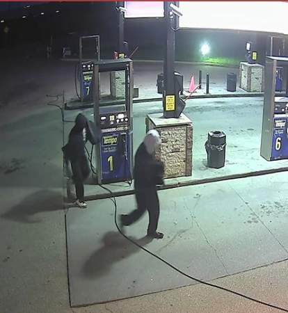 One of the suspects is described as having an average build and standing five feet 11 inches tall. He was wearing dark coveralls, dark shoes, a grey hoodie and ski mask.