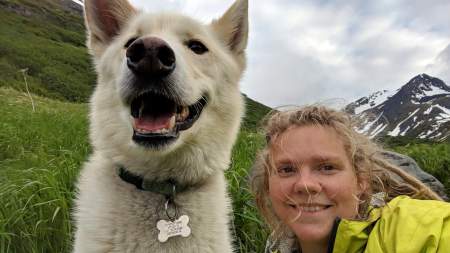 A seven-year-old Alaskan husky is credited with helping rescue an injured woman hiking a trail east of Anchorage, Alaska.
