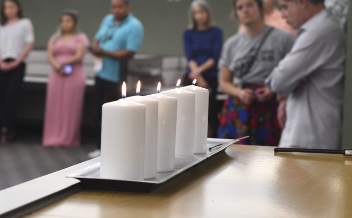 The remembrance also touched journalism schools. No classes were in session at the University of Maryland’s Philip Merrill College of Journalism, but more than a dozen faculty members and students bowed their heads in memory of the slain newspaper workers.