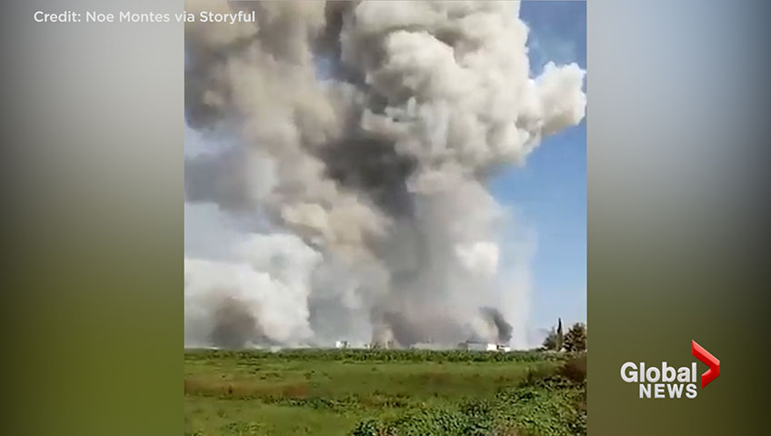 Video shot from a nearby highway showed a massive plume of smoke rising up from the area of the explosion in the town of Tultepec. Other images released by local media showed wrecked buildings and scorched ground in a rural patch of modest homes and small farm plots.