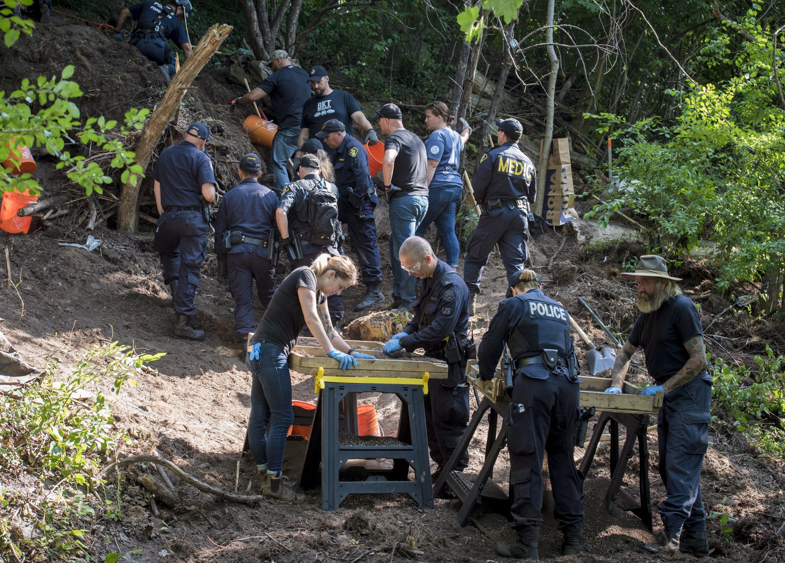 Investigators said Thursday the dig operation is centralized on a compost pile on the side of the ravine.