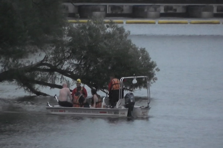 Peterborough Fire Services Platoon Chief Jeff Guest says a group of people was swimming in the area near Edinburgh Street when a storm blew in.