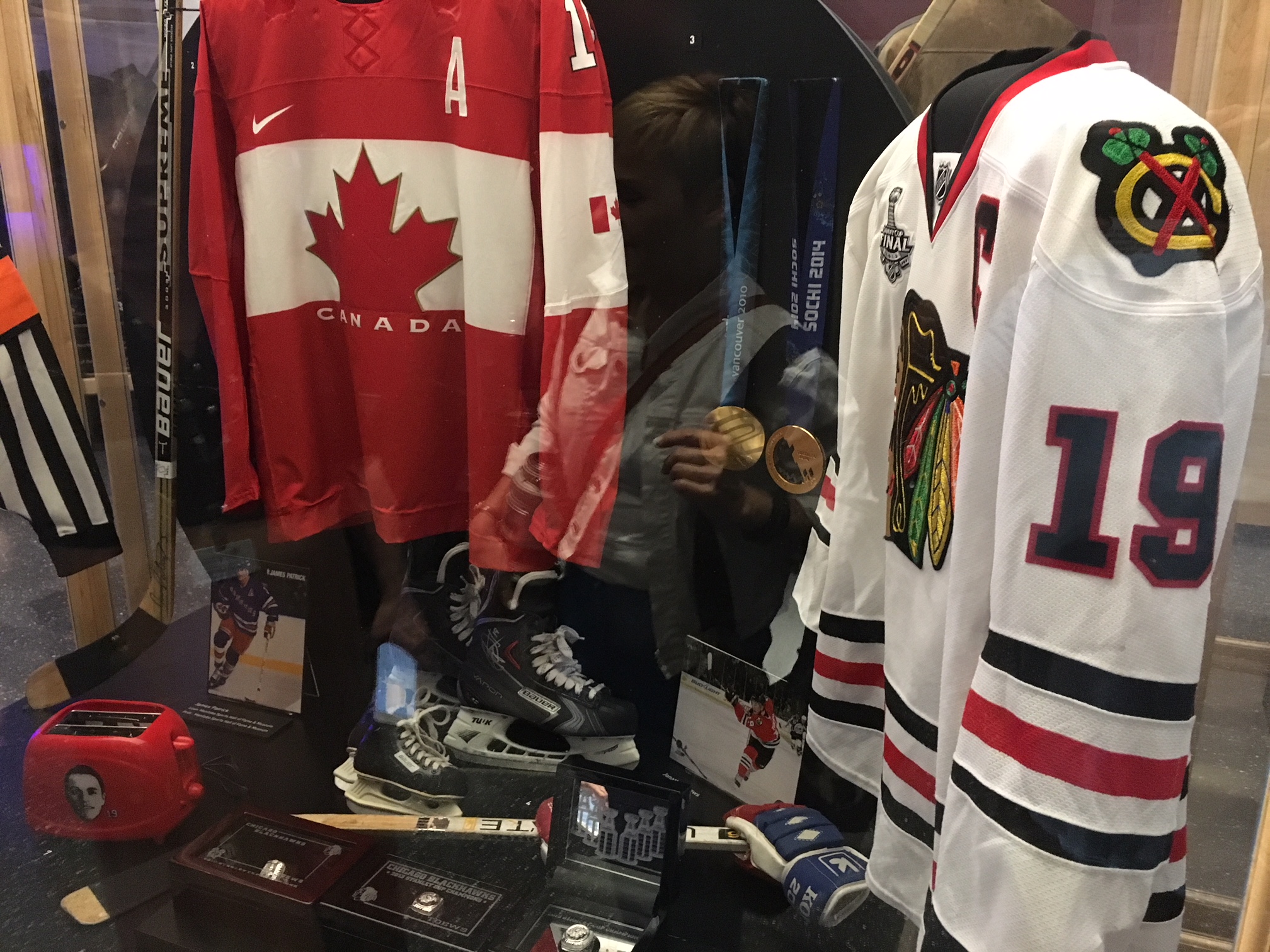 Among the jerseys is the one worn by Sidney Crosby when he scored the golden goal in 2010.