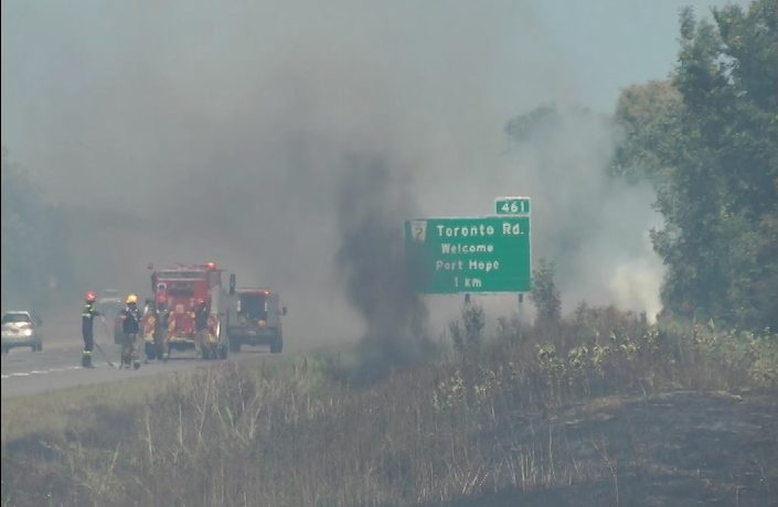 Before 3 p.m., Port Hope firefighters were called to the eastbound lanes at Townline Road near the Durham border for a fire. Firefighters quickly discovered a series of fires were burning, extending to the Toronto Road exit near Port Hope.