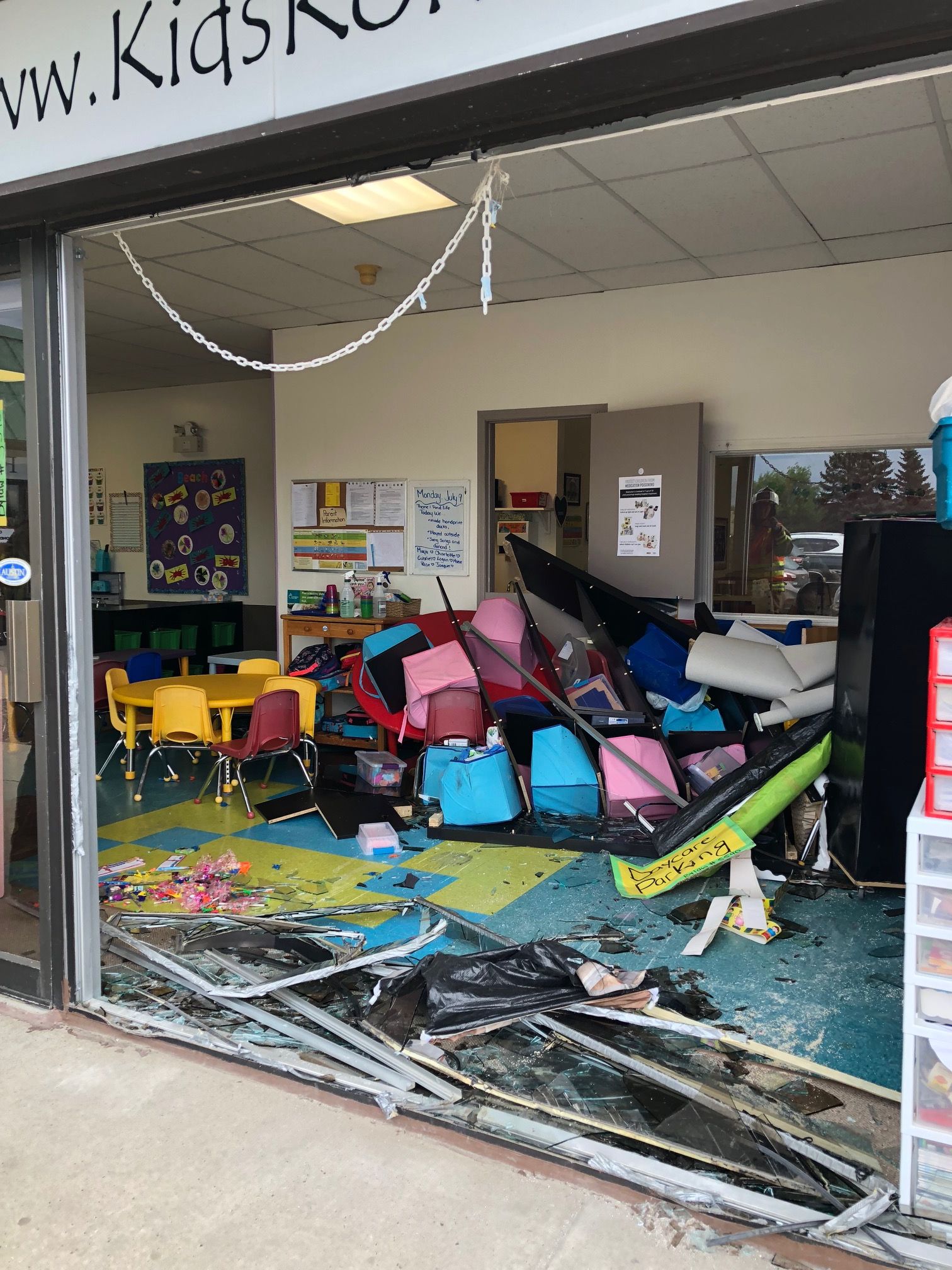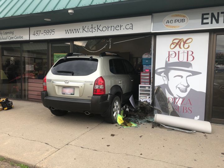 Shortly before 10:30 a.m., a beige SUV drove through the front of the Kids Korner child care centre in the area of 19 Avenue and 105 Street.
