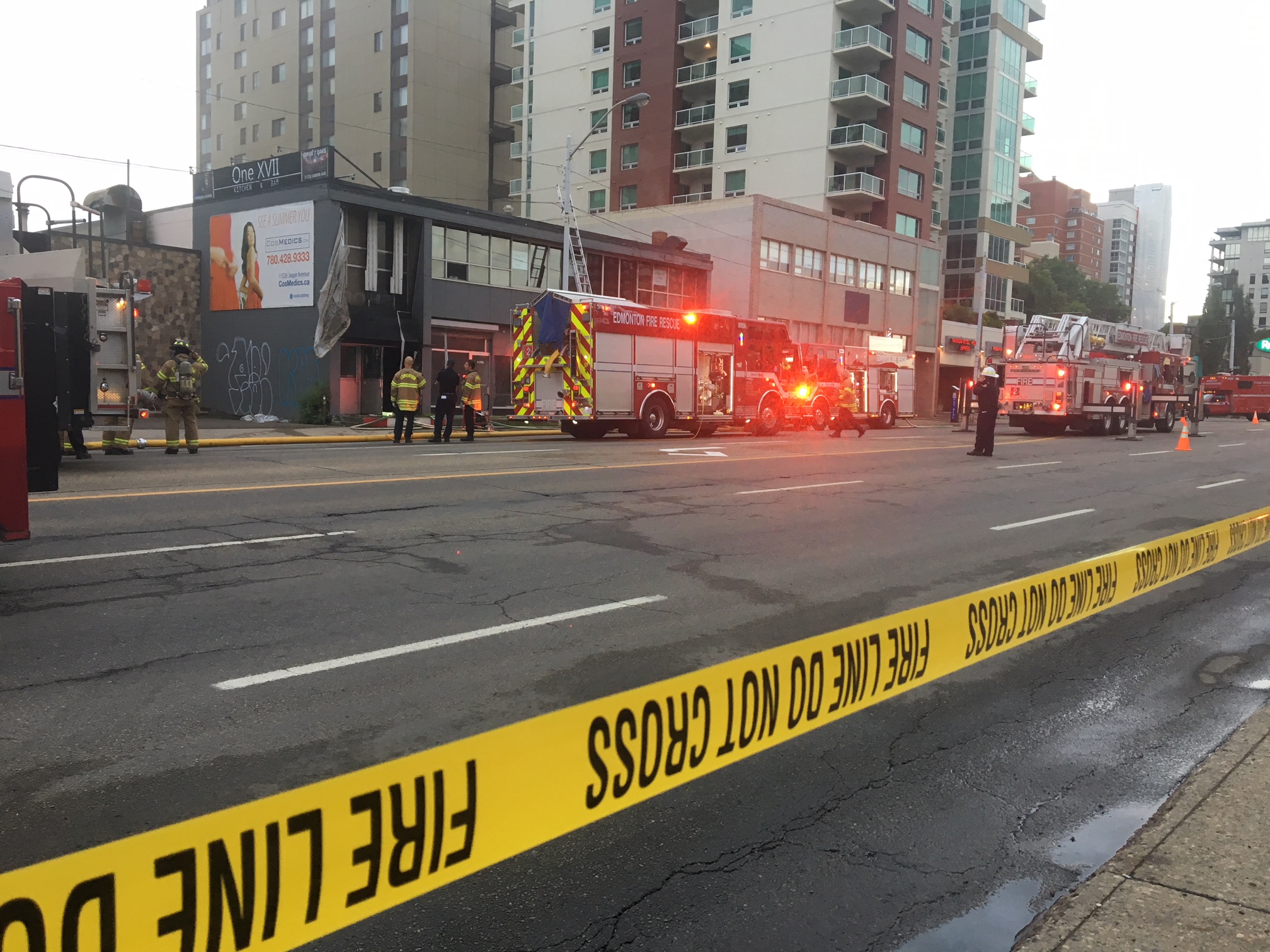 Edmonton Fire Rescue Services said crews were called at 5:51 a.m. to the fire at a commercial building along the west end of Jasper Avenue near 117 Street. The fire shut down a stretch of the Edmonton road for a few hours.