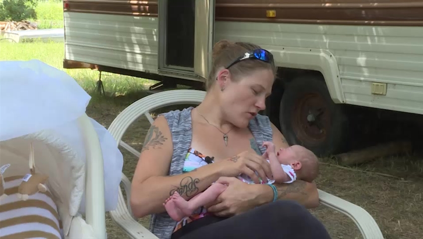 Tarren has only been alive for a few weeks, but she, and her mother Tiara, have moved into a trailer in the back of a stranger’s backyard.