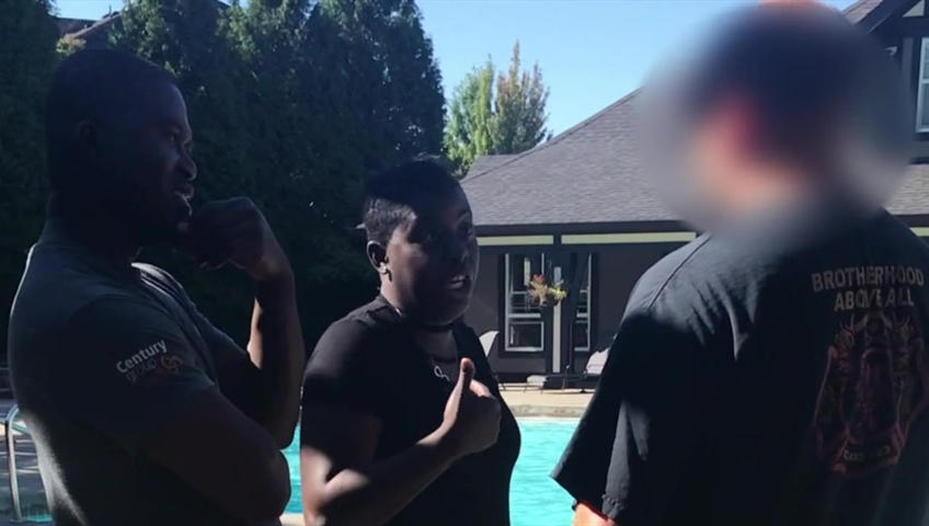 In a video taken by Elva, Henry and her husband are shown confronting the resident, trying to explain to him how the incident made them feel.