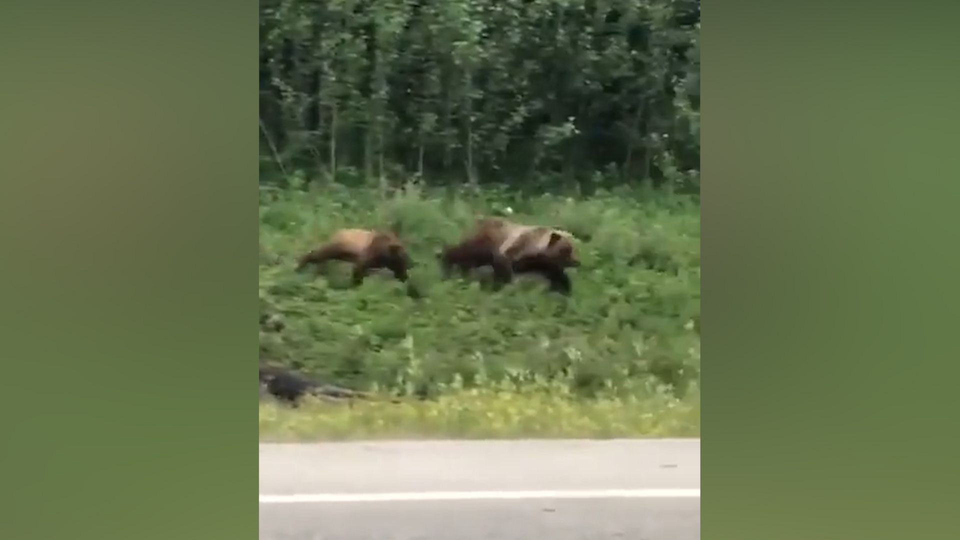 An Alberta man came across a surprising sight last week when he discovered a black bear getting chased by some grizzly bears on an Alberta highway.