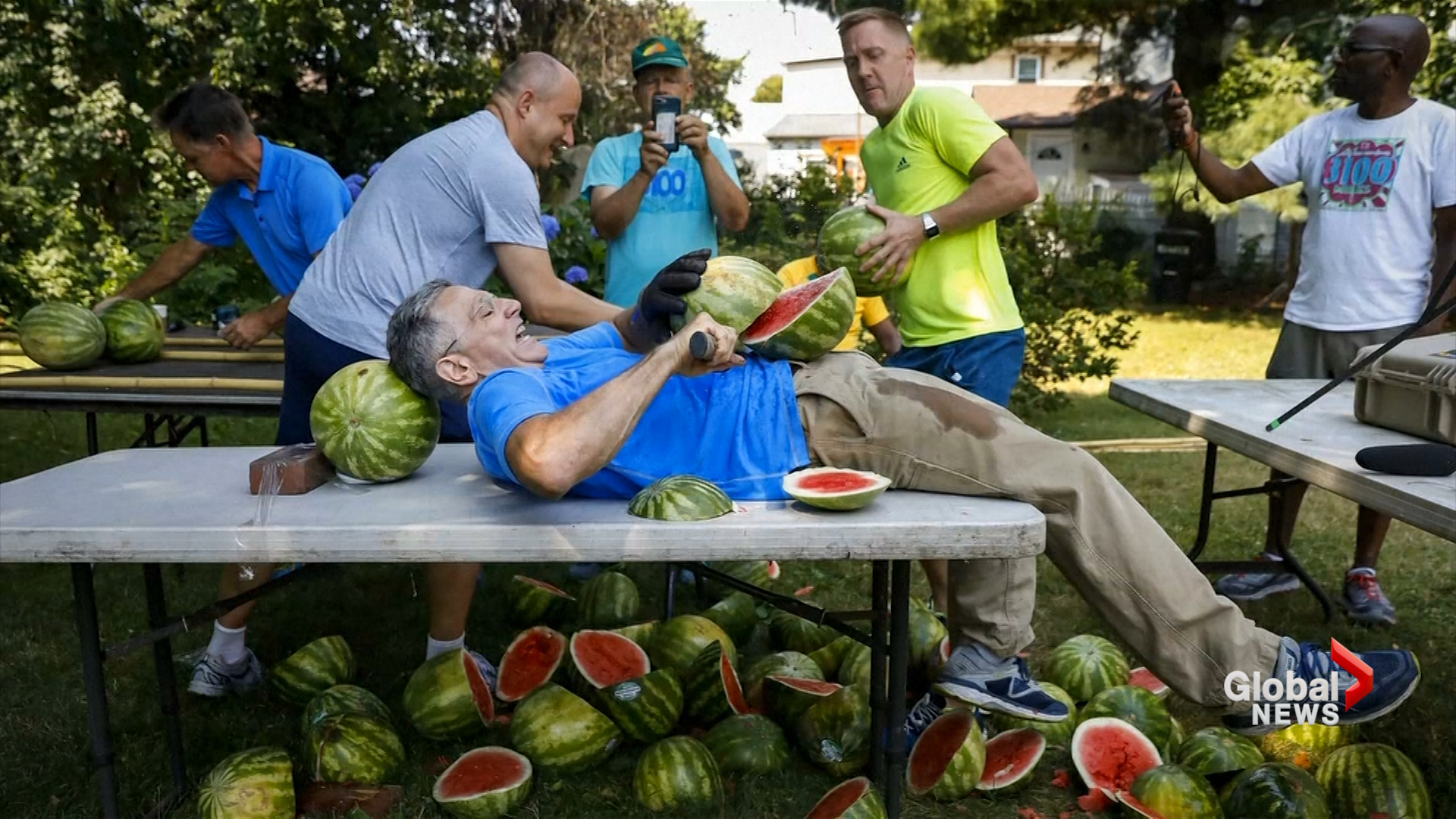 The man who holds more Guinness World Records than anyone, Ashrita Furman, proved once again he is a cut above his nearest competition, setting a new record Tuesday for slicing the most watermelons in half on his own stomach in one minute.