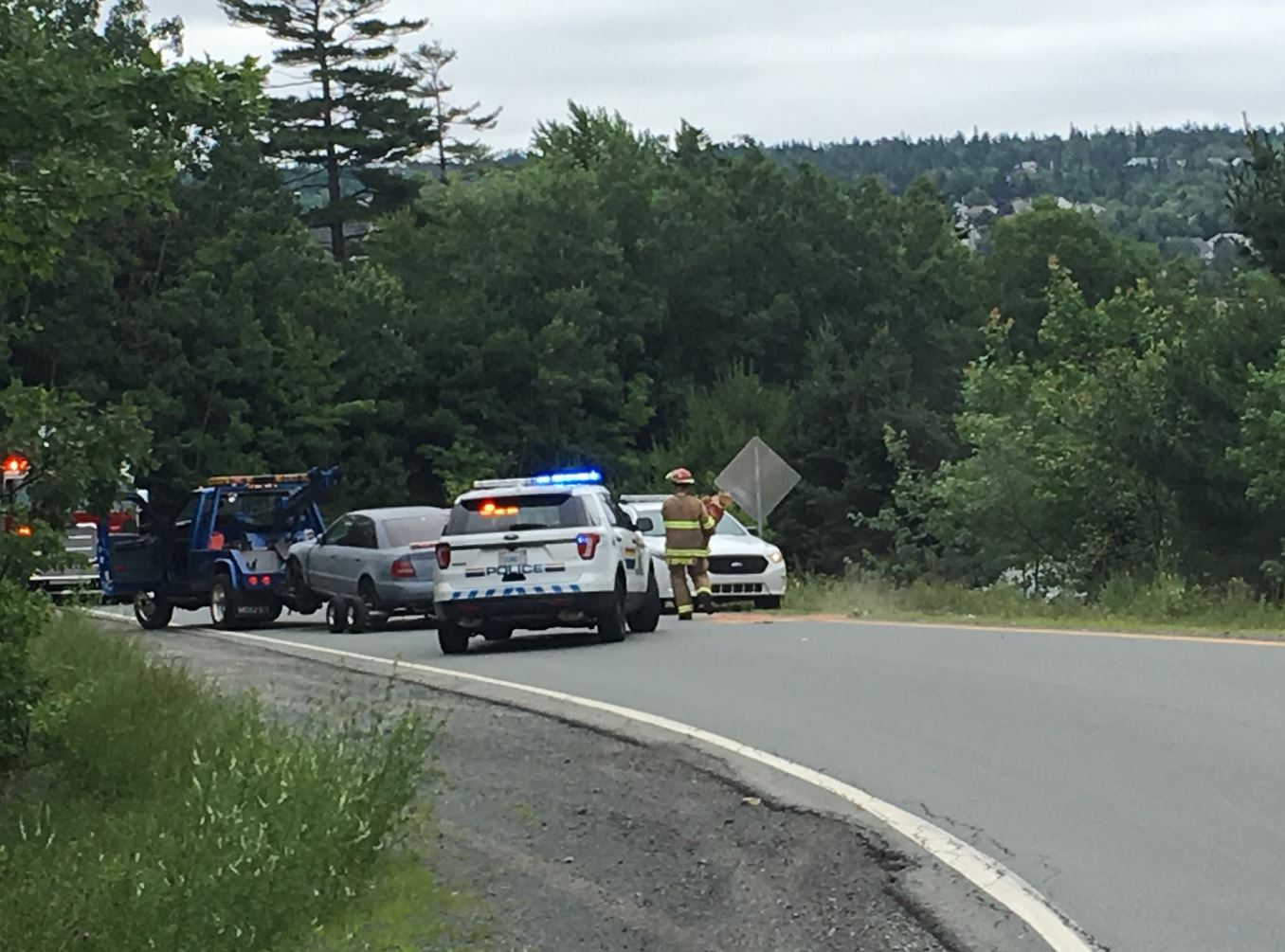 The suspects were later reportedly spotted driving erratically on Hammonds Plains Road. Police say their investigation led them to Highway 102 Exit 2B, where a crash occurred involving a vehicle matching the description of the suspect vehicle.